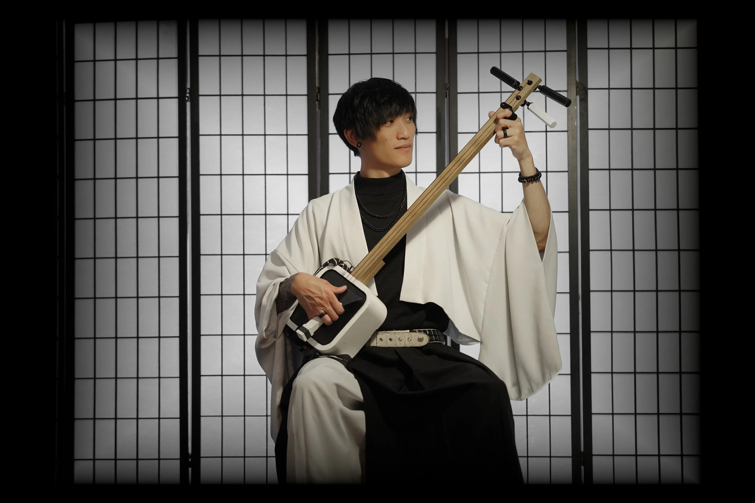 JERO11 also built his own electric shamisen. He performs his own style of shamisen playing, a blend of traditional Tsugaru shamisen techniques and more than 25 years of electric guitar experience.